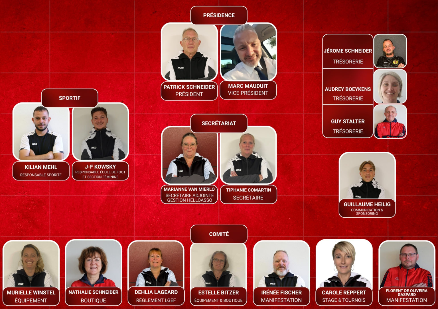 Le conseil d’administration du club est Patrick Schneider, son Président. Patrick Schneider est accompagné de son Vice-Président Marc Mauduit, de ses responsables trésorerie, de ses secrétaires Tiphanie et Marianne, et de l’ensemble de ses 9 autres membres.